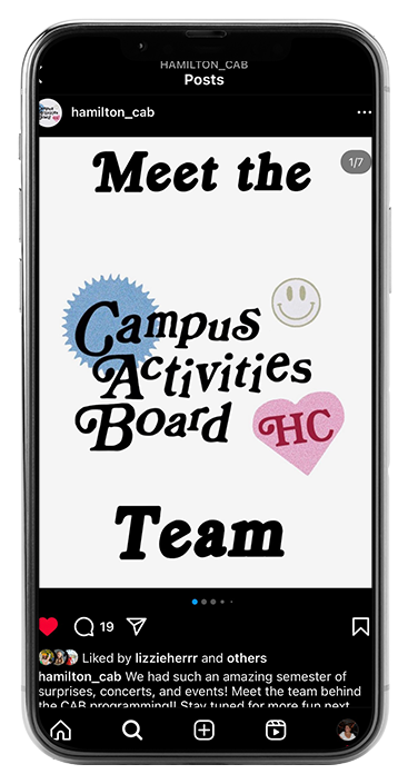 During my time managing Hamilton’s Campus Activities Board Instagram, I created promotional graphics that boosted student engagement and effectively communicated event information. I utilized Adobe Creative Cloud, mixed media collages, and digital drawing techniques to create content. More of my work for CAB can be found here.